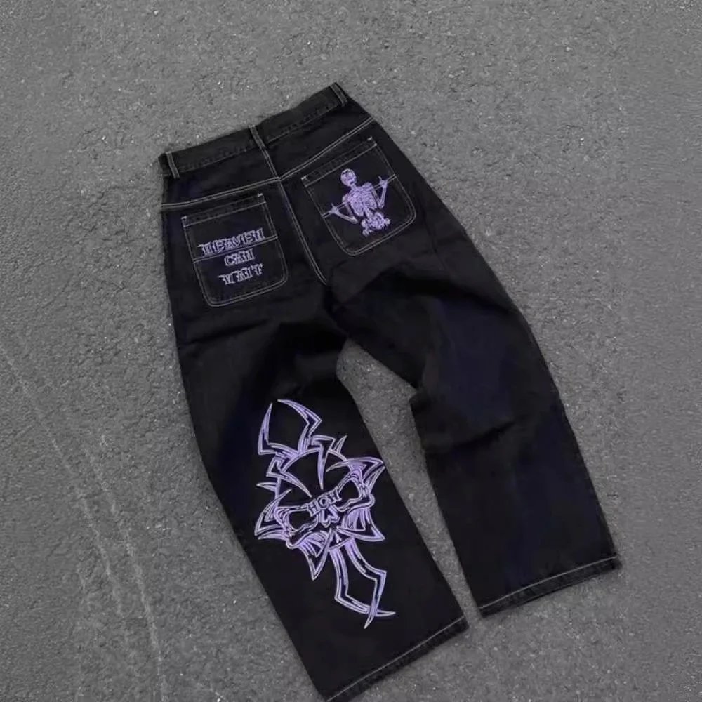 街舞宽腿宽松的牛仔裤男士时尚黑色宽松板牛仔裤男说唱牛仔裤