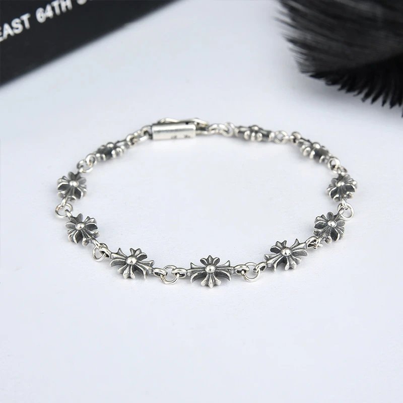 个性十字架船锚字母手链朋克简约复古泰银手链女情侣