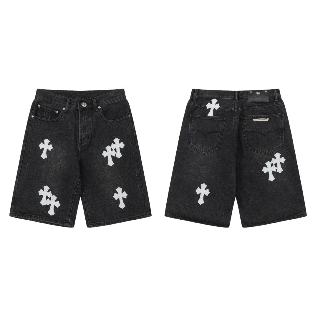 CH十字架拼皮克罗牛仔短裤情侣款