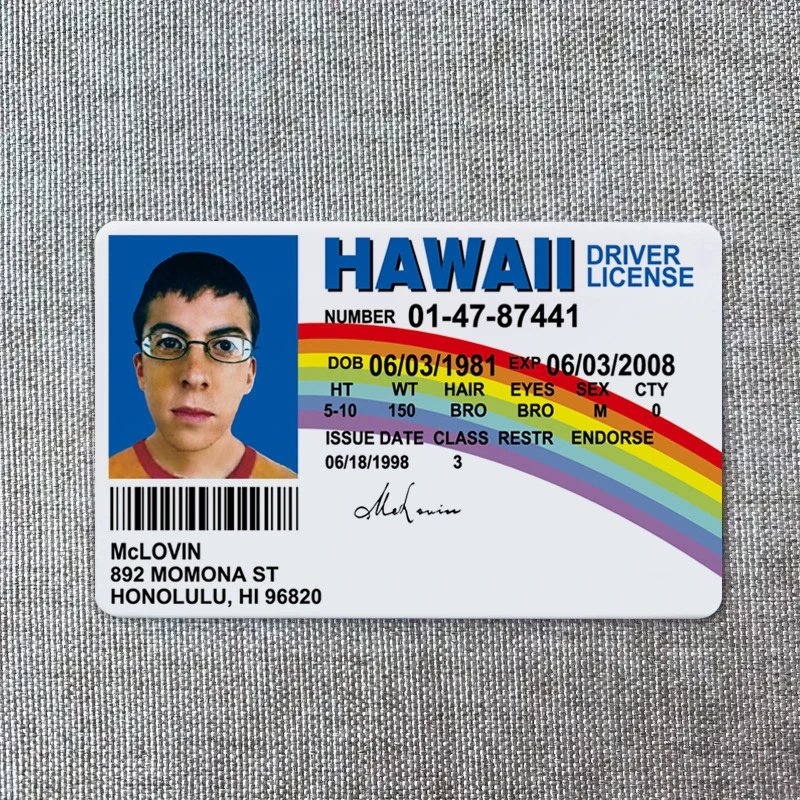 hawaii driver license mclovin funny card Prank Items